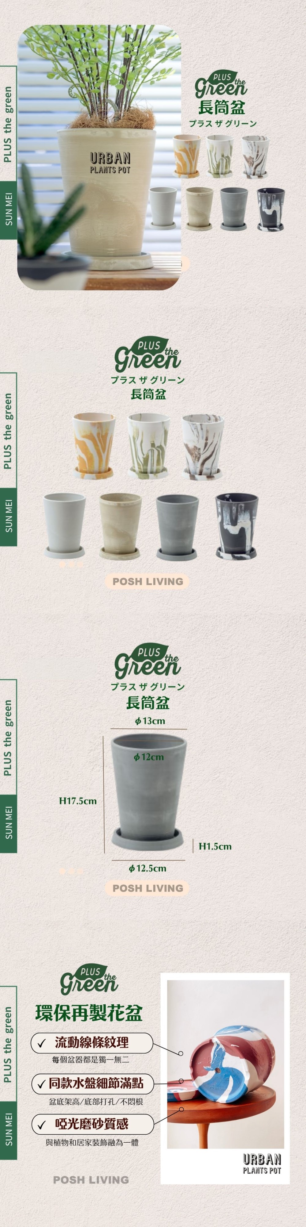本賣場皆有不同尺寸規格,實品質量真的很驚豔有別於其他環保再生花盆,啞光外表手感挺有份量。