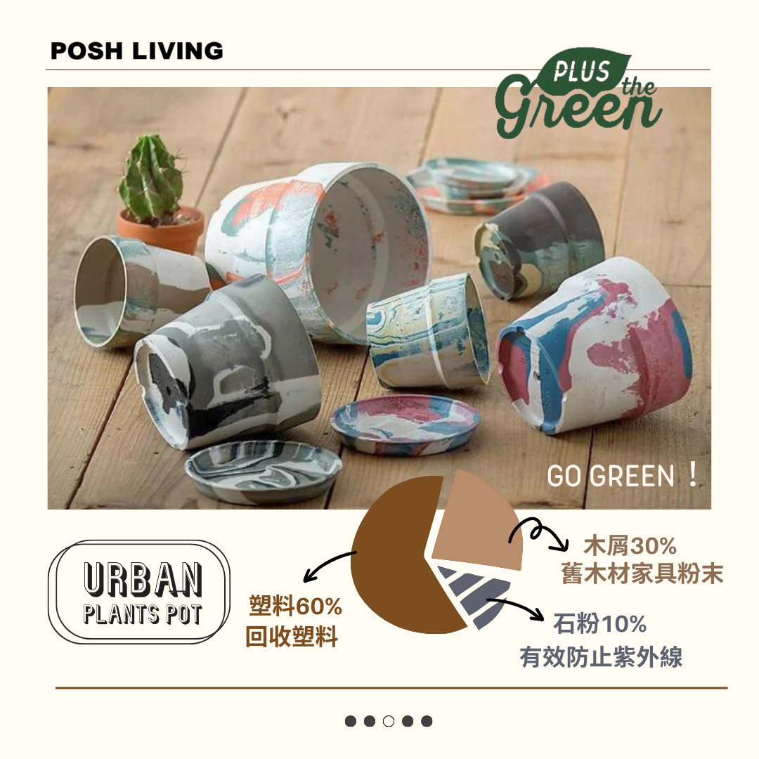 採用廢棄的木屑和石粉混合到可回收塑料製成的特色花盆,啞光質感增添植物美感!